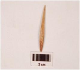| Description / विवरण | A point made on bone, rectangular in cross section, polished surface and sharp pointed tip. |