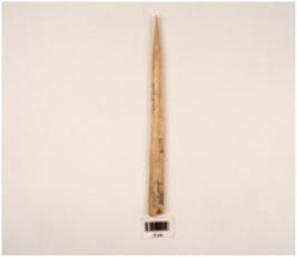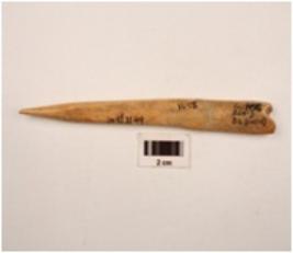 | Description / विवरण | A needle made on bone with broken eye hole pointed at one side and thick at other well polished and smooth surface. |