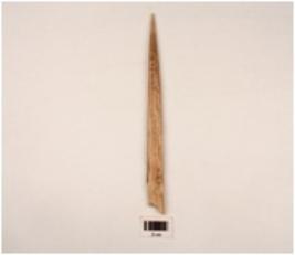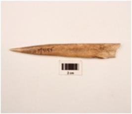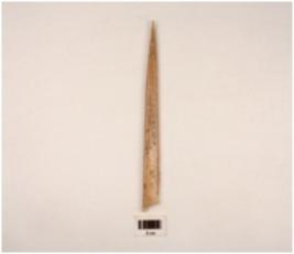 | Description / विवरण | Needle made on bone with damaged eye hole pointed at one side well polished and smooth surface |