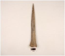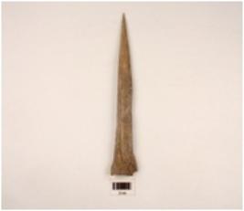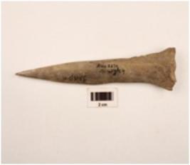 | Description / विवरण | An arrow head made on bone pointed at one end and blunt at other end well polished and smooth surface |