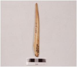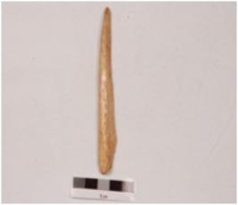 | Description / विवरण | A point made on bone, pointed at one end while it is flat at the other end, it has smooth and polished surface, partly broken. |