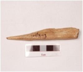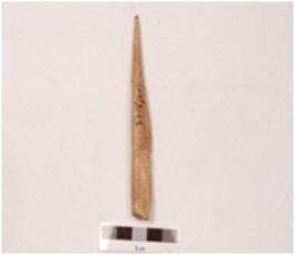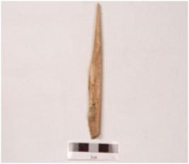 | Description / विवरण | An point made on charred bone with properly polished surface and pointed at one end, partly damaged surface, slightly broken at the tip. |