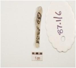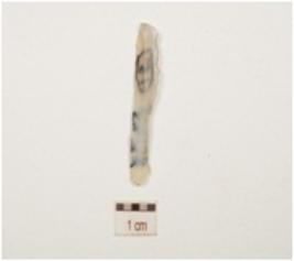 | Description / विवरण | A fragment of backed blade made on chalcedony, end struck flake, diffused bulb on ventral surface, use wear marks on cutting edge, broken at one side and triangular cross section. |