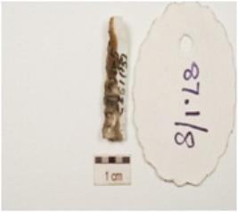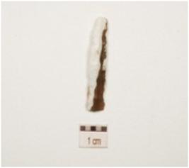 | Description / विवरण | A backed balde made on chert, end struck flake, bulb absent, sharp cutting edge, blunted one side, ridge on dorsal surface and triangular cross section. |
