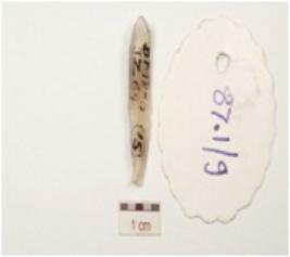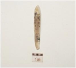 | Description / विवरण | A point made on chalcedony, end struck flake, bulb absent, pointed distal end, blade scars on dorsal surface and triangular cross section. |