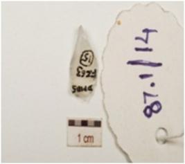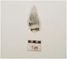 | Description / विवरण | A flake on chalcedony end struck flake, bulb absent, pointed one end, flake scars on surface and plano convex cross section. |