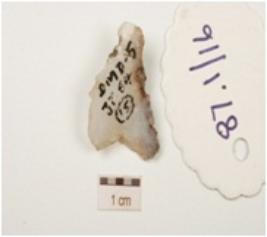 | Description / विवरण | A flake on chalcedony side struck flake, bulb absent, pointed one end, flake scars on surface and rectangular cross section. |