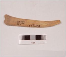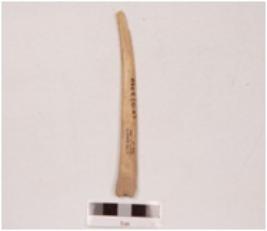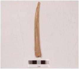 | Description / विवरण | A point made on bone with smooth and polished surface, it is pointed and slightly curved towards one end, wide groove on the surface. |