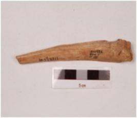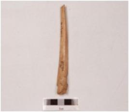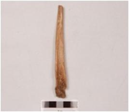 | Description / विवरण | A bone slicer with smooth and polished surface, broken at the tip and slightly curved surface. |