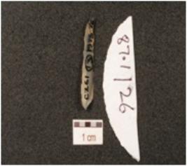 | Description / विवरण | A blade made on chalcedony, single ridge on dorsal side, use marks on working edges and triangular cross section. |