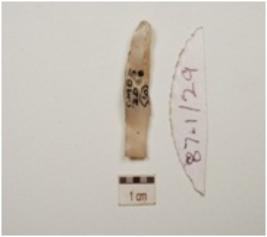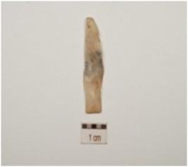 | Description / विवरण | A blade made on chalcedony with crested ridge, prepared platform on proximal end and triangular cross section. |