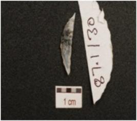 | Description / विवरण | A flake made on chalcedony flake scars on one side and use marks on working edges. |