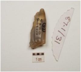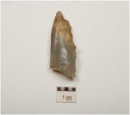 | Description / विवरण | A core made on chalcedony, prepared platform on proximal end and blade scars on both sides. |