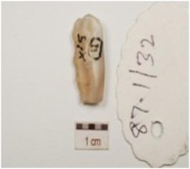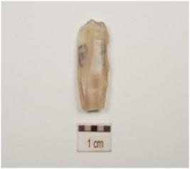 | Description / विवरण | A core made on chalcedony, prepared platform on proximal end, and blade scars on both sides. |