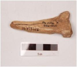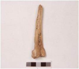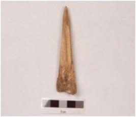 | Description / विवरण | An arrow head made on bone with smooth surface, pointed at one end and broad at the other, groove on the inner surface, polished. |