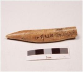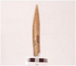 | Description / विवरण | A point made on bone, pointed at one end and properly polished surface, it is broken at the other end. |