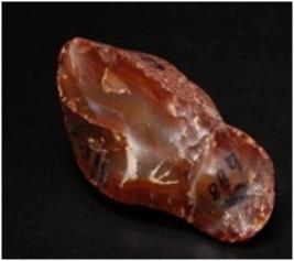 | Description / विवरण | Chert flake with cortex and flake scars. |