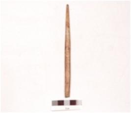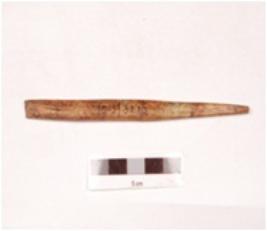 | Description / विवरण | A point made on charred bone with smooth and polished surface, pointed at one end white broken at the other end, it is slightly grooved at the base and thin and elongated in character. |