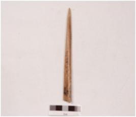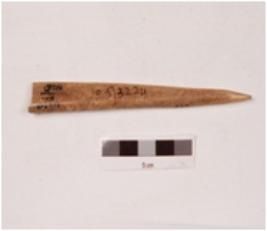 | Description / विवरण | A point made on bone with smooth and polished surface, pointed at one end and broken at the other, it has groove on the surface. |