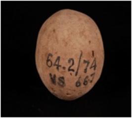 | Description / विवरण | A handmade, well baked, terracotta sling ball and round in shape. |