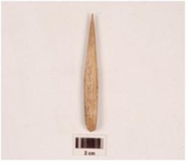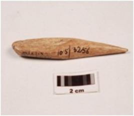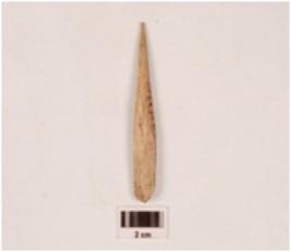 | Description / विवरण | A bone point, pointed at one end, polished on both sides, smooth surface. |