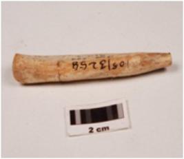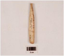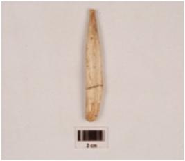 | Description / विवरण | Fragment of a bone slicer cutter slightly broken both sides, polished on both sides, smooth surface. |