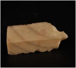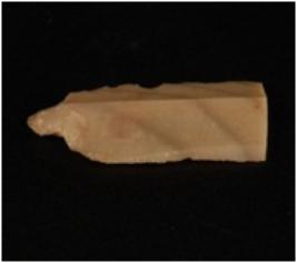 | Description / विवरण | A borer made of a chert blade with a prominent mid ridge on dorsal, triangular in section, use-wear marks along the cutting edges with bands on both sides. |