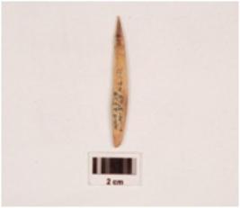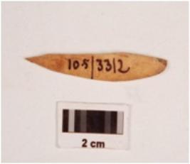 | Description / विवरण | Fragment of bone point, rectangular in section, slightly broken at one end, smooth surface, polished on both sides. |
