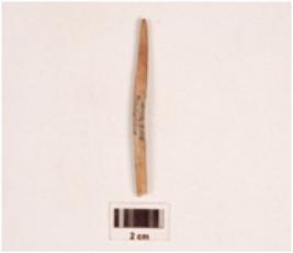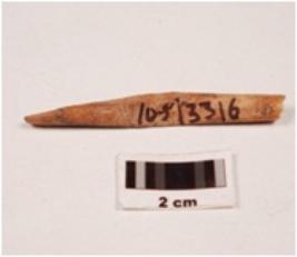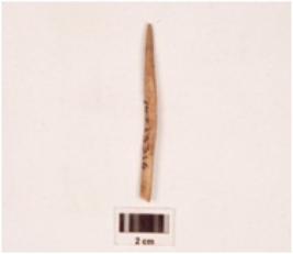 | Description / विवरण | Fragment of a bone point, slightly broken at one end, pointed at other sides, polished on both sides, smooth surface. |