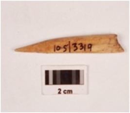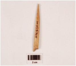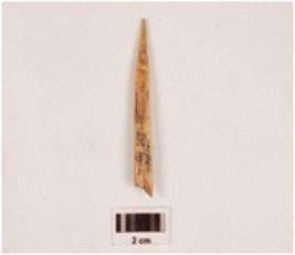 | Description / विवरण | Fragment of a bone point, slighlty broken at one end, pointed at other end, polished on both sides, smooth surface. |