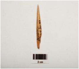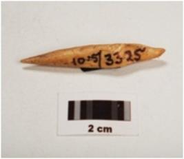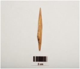 | Description / विवरण | Point made on bone with polished surface, triangular in section, pointed toward one end, broad at other end. |