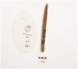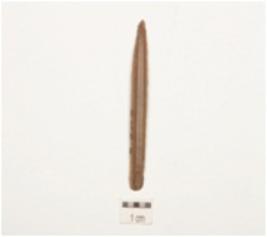 | Description / विवरण | Pen knife blade made on chert, wear marks along cutting edges, two ridges on dorsal surface, pointed distal end, prominent bulb on ventral surface and trapezoidal cross section. |