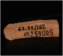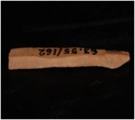 | Description / विवरण | A chert blade, two ridges on the dorsal, bulb on the ventral side, two cutting edges, prepared platform and trapezoidal section. |