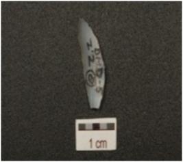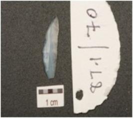 | Description / विवरण | Lunate made on chalcedony, regular retouched cutting edges and blade scars on dorsal surface. |