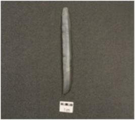 | Description / विवरण | A blade made on chalcedony end struck flake, flake scars on dorsal side, bulb of percussion on ventral side and partly retouched cutting edge. |