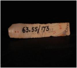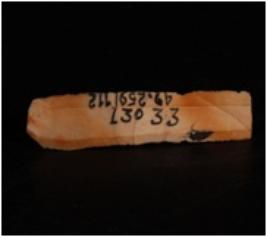 | Description / विवरण | A chert blade, two ridges on the dorsal, bulb on ventral side, two cutting edges, prepared platform and trapezoidal section. |
