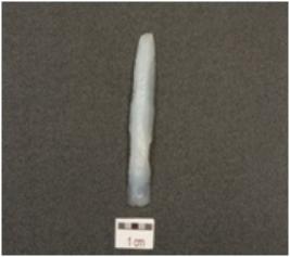 | Description / विवरण | A blade made on chalcedony end struck flake, flake scars on dorsal side, bulb of percussion on ventral side, partly retouched cutting edges with used wear marks and prepared platform on proximal end. |