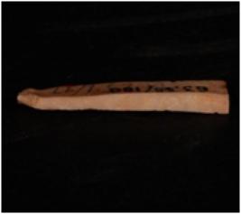| Description / विवरण | A chert blade, two ridges on the dorsal, bulb on the ventral side, prepared platform and trapezoidal section. |
