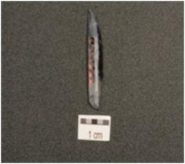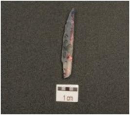 | Description / विवरण | A blade made on end struck chalcedony flake. flake scars on dorsal side, prepared platform on proximal end and bulb of percussion on ventral side. |