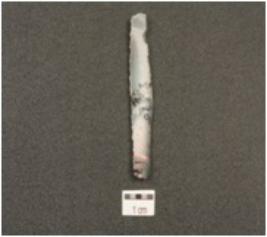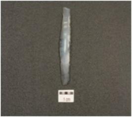 | Description / विवरण | A blade made on chalcedony end struck flake, flake scars on dorsal side, bulb of percussion on ventral side and partly retouch cutting edges. |