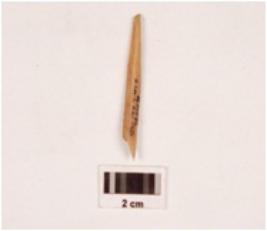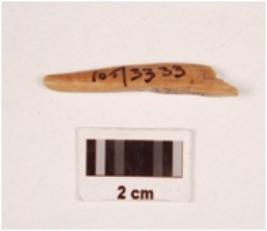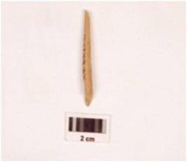 | Description / विवरण | Fragment of a bone point, slighlty broken both ends, polished on both sides, smooth surface. |