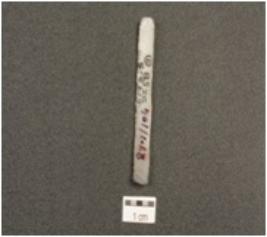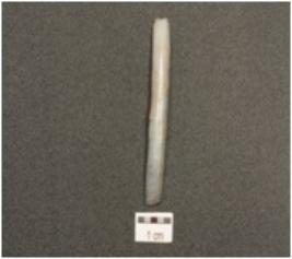 | Description / विवरण | A blade made on chalcedony end struck flake, bulb of percussion on ventral side, flake scars on dorsal side and partly retouch cutting edges. |