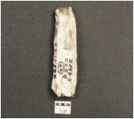 | Description / विवरण | A chalcedony core, blade scars on the surface. |