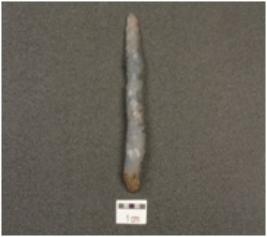 | Description / विवरण | A blade made on chalcedony end struck flake, flake scars on the surface and sharp cutting edges. |