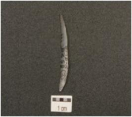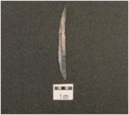 | Description / विवरण | A chalcedony trapeze, pointed on both end and partly retouch cutting edge. |