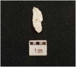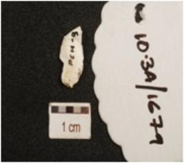 | Description / विवरण | A chert flake with flattened cross section and broken along one end. |