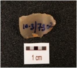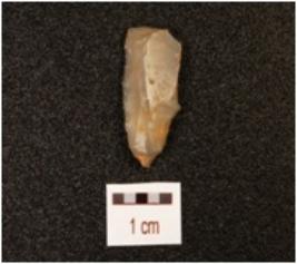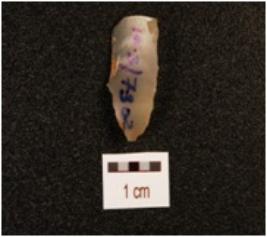 | Description / विवरण | A blade, made on chalcedony with mid ridge on dorsal side, diffused bulb on ventral, triangular in section and use wear marks on cutting edge. |