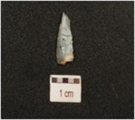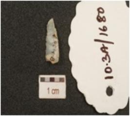 | Description / विवरण | A chalcedony blade with mid ridge on dorsal, triangular cross section, use wear marks on cutting edge and broken along one end. |