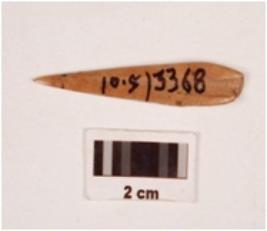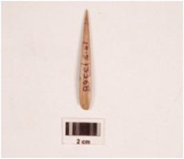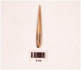 | Description / विवरण | Fragment of a bone point, slightly broken at one end, pointed at other end, polished on both sides, smooth surface. |