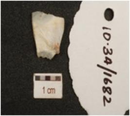 | Description / विवरण | A chalcedony utilized flake with flattened cross section and use wear marks on edge. |